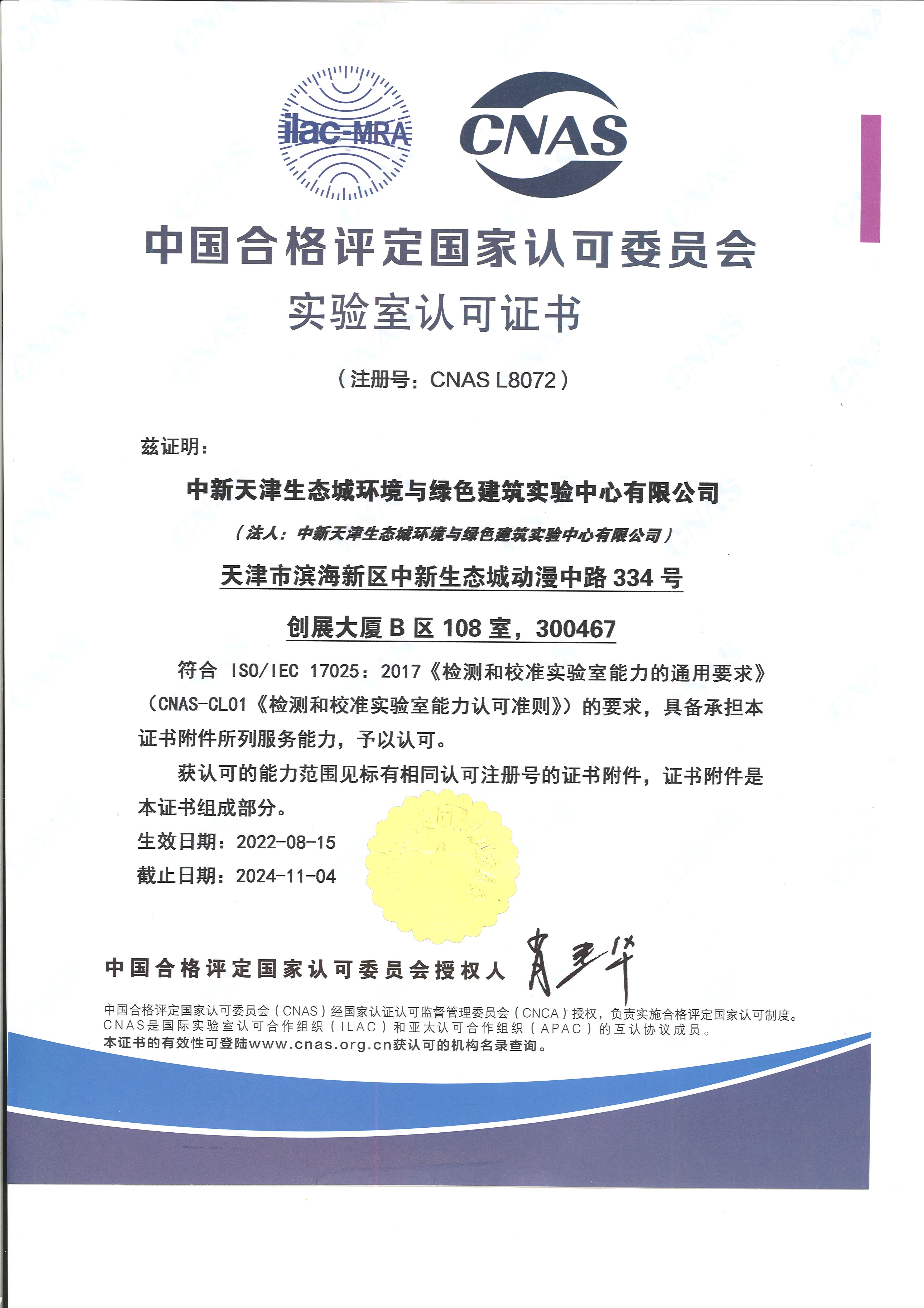 中新天津生態城環境與綠色建筑實驗中心有限公司